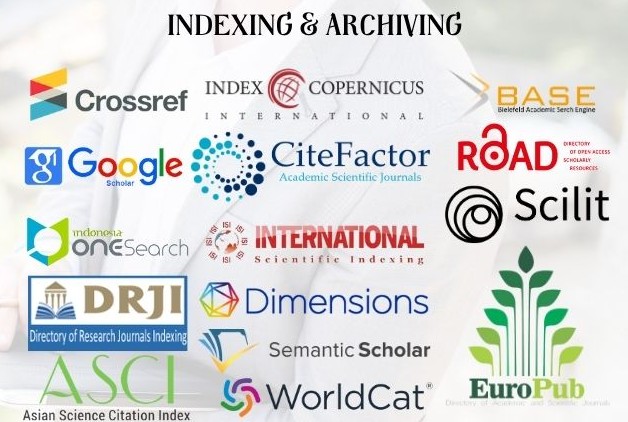 Crossref, Google Scholar, Dimensions, Semantic Scholar, WorldCat, BASE, DRJI (Directory of Research Journals Indexing), CiteFactor, Index Copernicus, ROAD, Scilit, EuroPub, ASCI (Asian Science Citation Index), ISI (International Scientific Indexing), and Indonesia OneSearch.